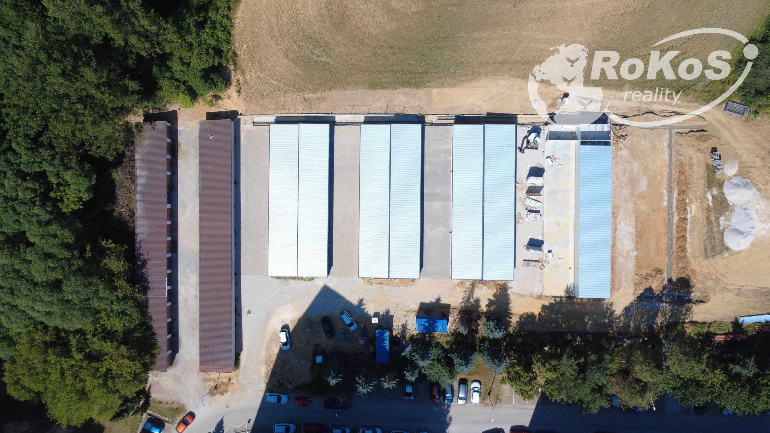 Steny: Samonosné, zosilnené C profilmi Strecha: Trapézový plech T20 mm (aluzinok) s atikovým plechom