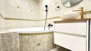 Podlahy: plávajúce podlahy, dlažba. Okná: plastové. Spôsob kúrenia: ústredné. Energetický certifikát: neuvedené. Vybavenie kúpeľne: vaňa. Vybavenie kuchyne: chladnička, umývačka riadu, plynový sporák, elektrická rúra.