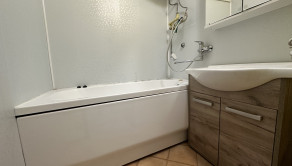 Podlahy: plávajúca podlaha, dlažba. Okná: plastové. Energetický certifikát: neuvedené. Vybavenie kúpeľne: Vaňa.