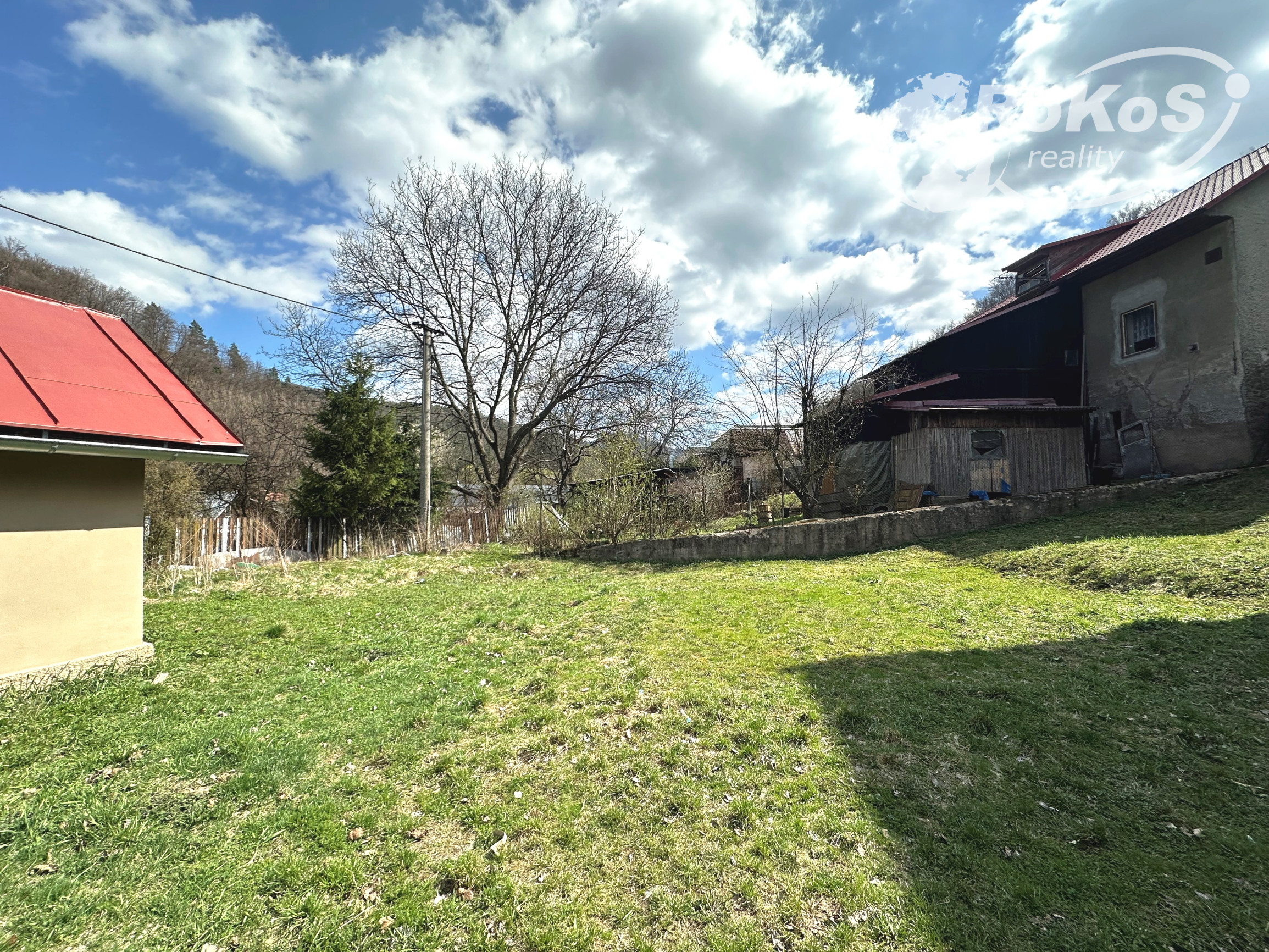 Na pozemok je vstup cez bránu a jeho výhodou je aj možnosť vstupu zo zadnej strany. Na pozemku sa nachádza garáž a altánok vhodný na oddych.